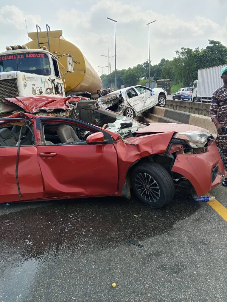 A multiple-vehicle accident involving a petrol tanker and six other vehicles occurred on Tuesday on Otedola Bridge, inward Berger, along the Lagos-Ibadan Expressway, causing traffic disruption in the area.